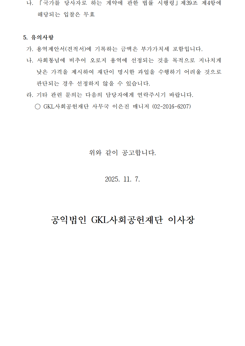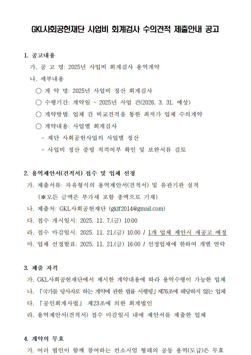 [마감] GKL사회공헌재단 사업비 회계검사 수의견적 제출안내 공고 (~11.21)
